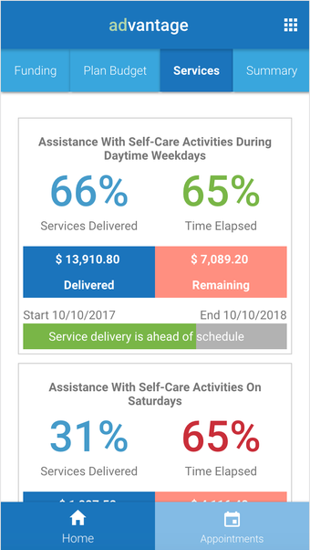 Careview Advantage é um aplicativo de produtividade desenvolvido para participantes do NDIS na Austrália, permitindo a sincronização de orçamentos e agendamentos com prestadores de serviços, coordenadores de suporte e gerentes de plano. Com uma interface acessível, os usuários podem visualizar suas informações em tempo real, facilitando o acompanhamento de suas necessidades e serviços.